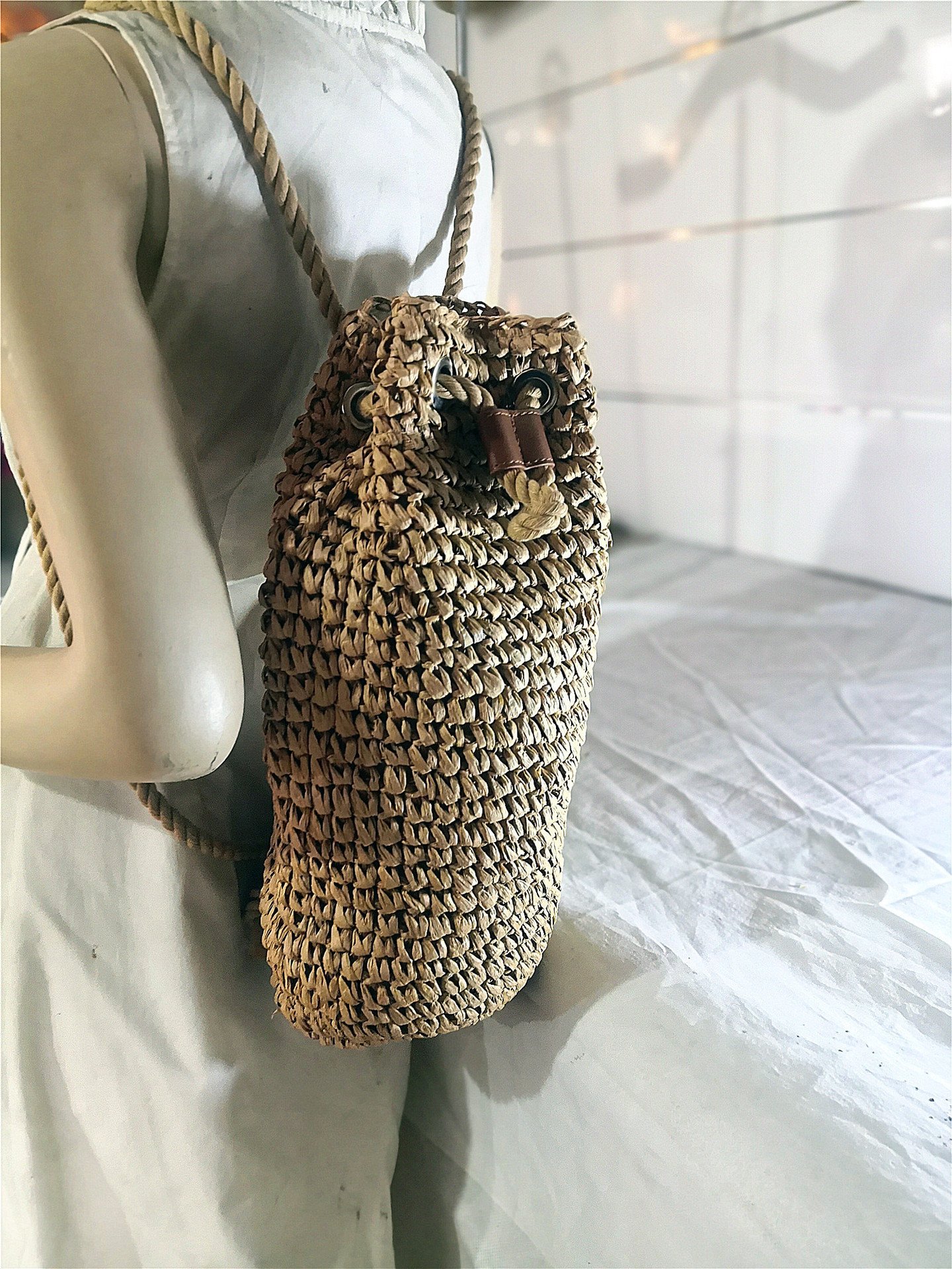 Fashion Crochet Backpack Large Capacity Photo Vacation Beach Shopping Straw Bag