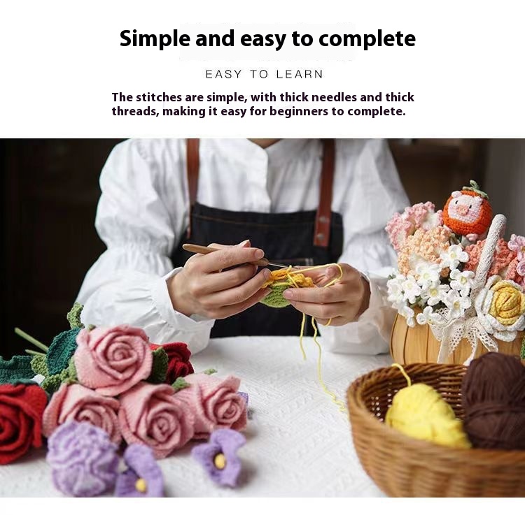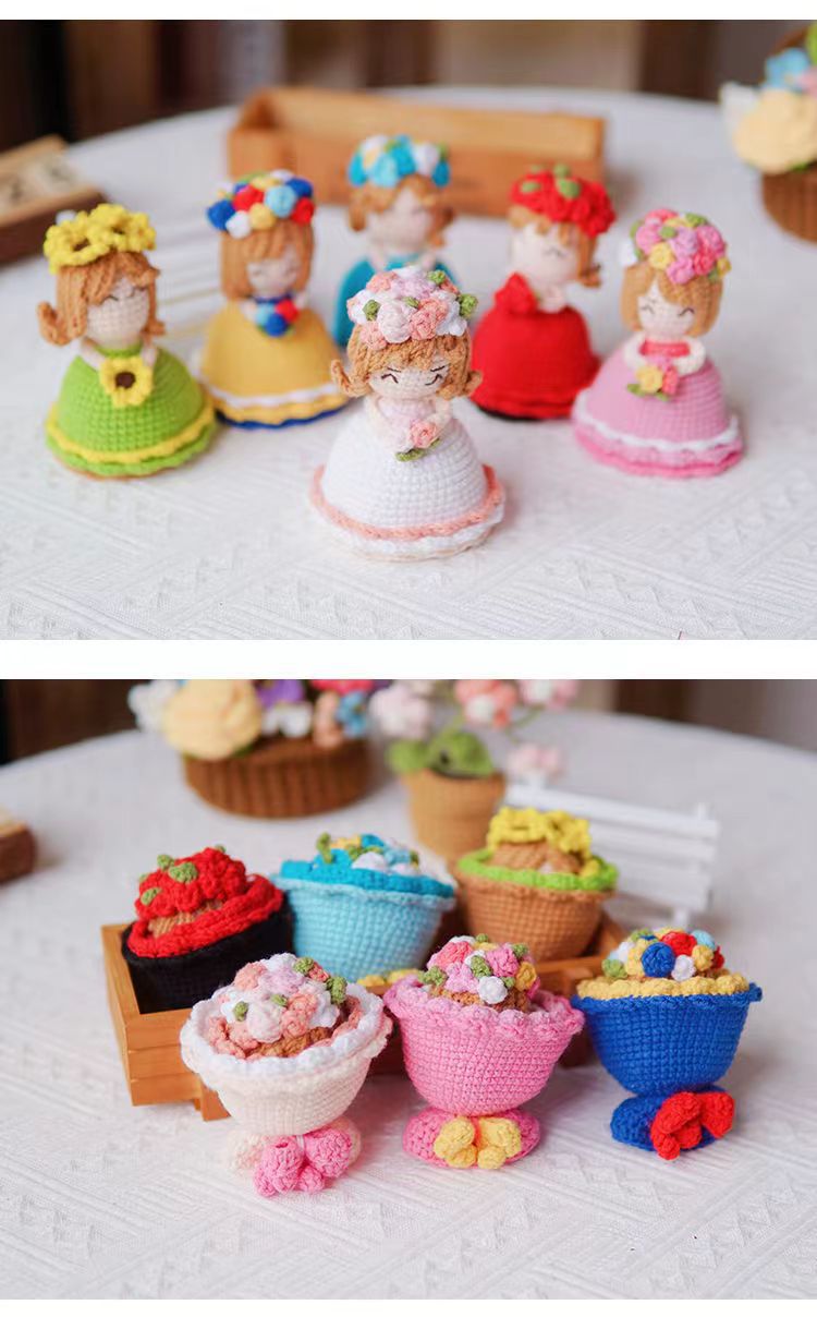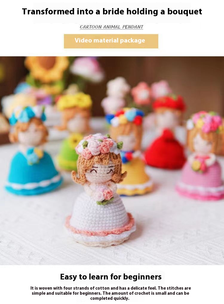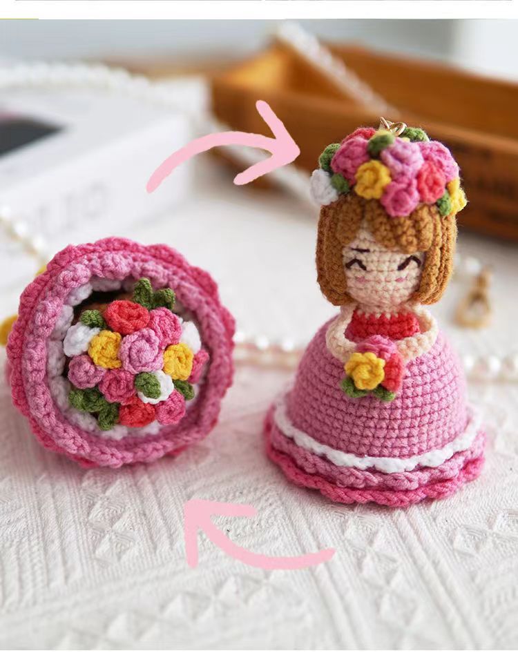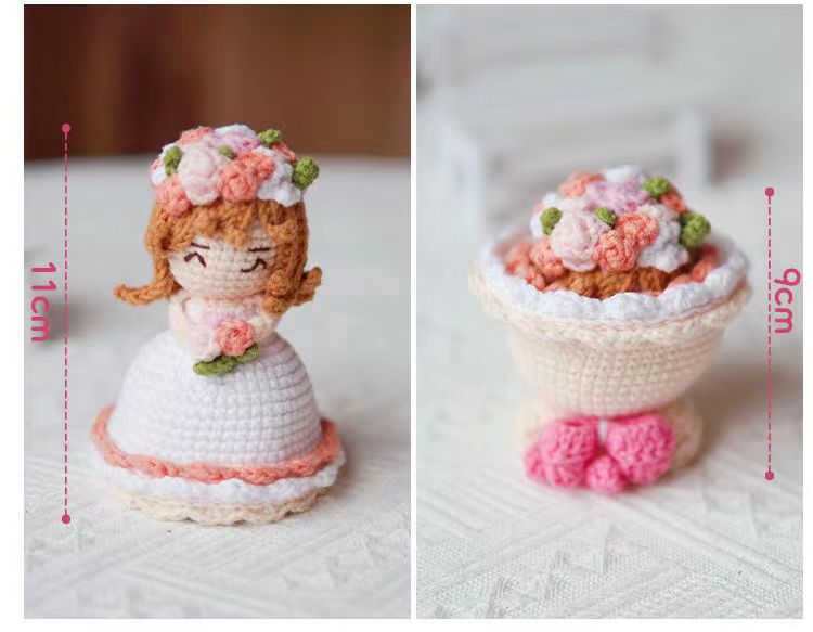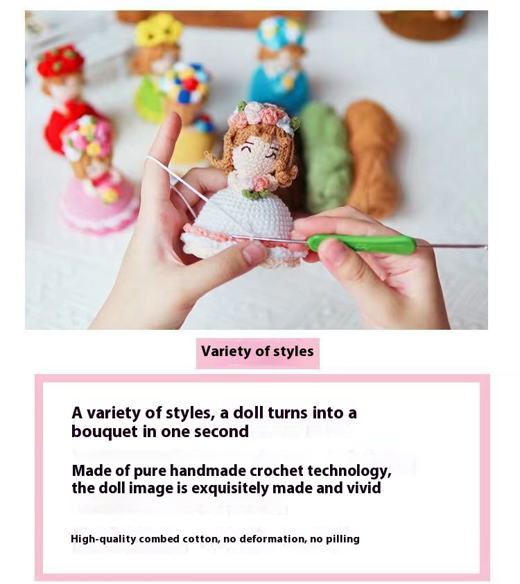 Hand-woven Diy Crossdressing Bridal Doll Wool Crochet Bouquet