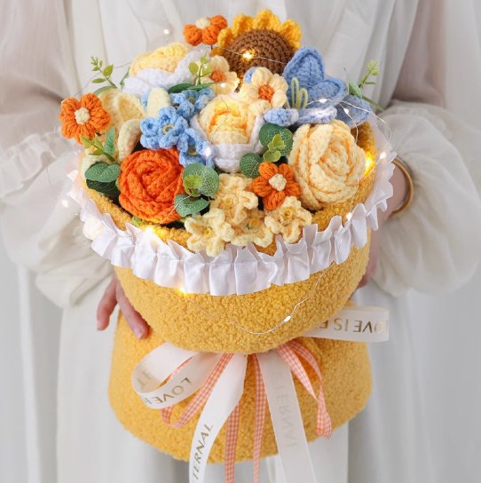 Knitted Finished Sunflower Rose Mixed Bouquet Birthday Gift